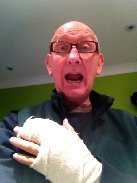 otherwise it would have just hung down uselessly and I wouldn’t be aware if I hit it or not. The anaesthetic, I was told, would last for up to 16 hours but in reality it wore off in the middle of the night and I did’t have strong enough pain killers in the house. During the waking hours, I became aware I could move my fingers again, then the wrist and eventually the arm – what a relief! Getting dressed was fun and I had to have the arm of an old sweatshirt cut along the seam to fit my hand through.