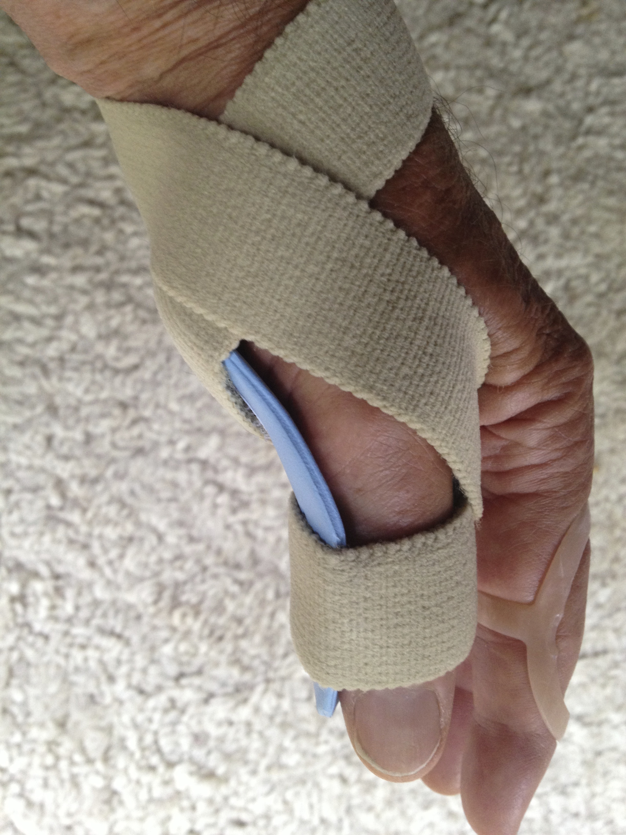 One is to prevent the finger from ‘swan-necking’ – this is when it begins to curve upwards from the knuckle because the ligaments have dropped to the bottom of the finger when some of the straps (which wrap around the circumference of the finger) were removed during the original operation. However, I recently lost this finger support and need to get a replacement.