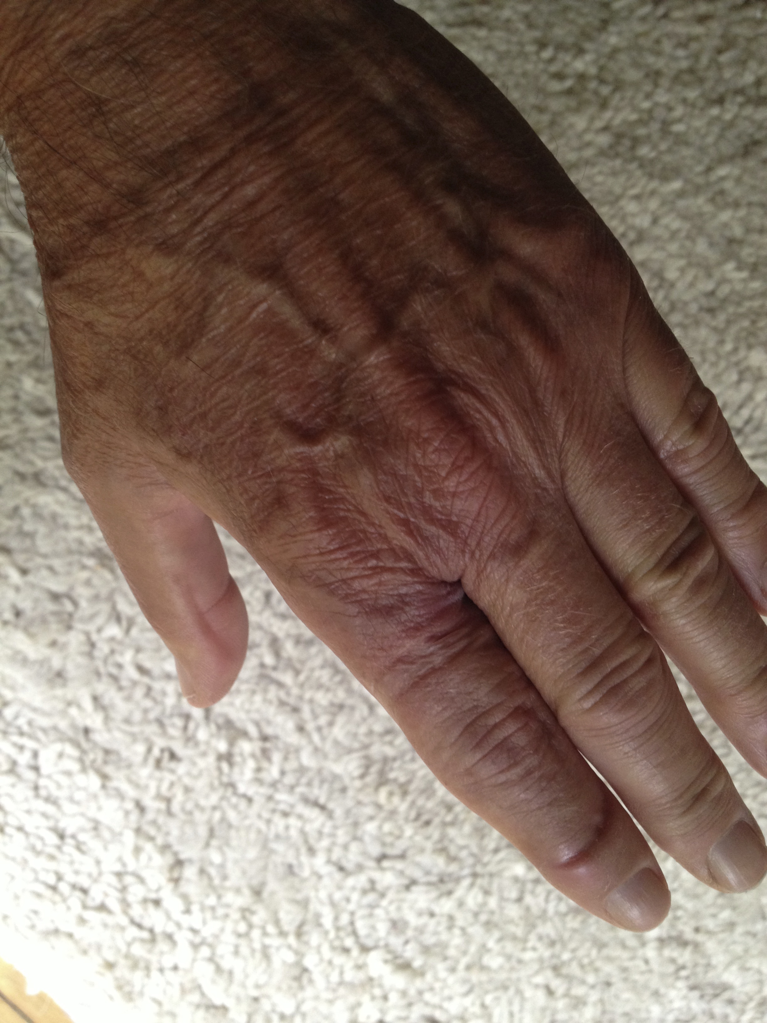 Meanwhile, back at the index finger, all the leaks have long since healed up, leaving me with a rather lumpy lowest joint and palm where the two meet (see pic).